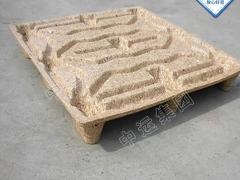 组合模压托盘木质为主要原料,经过粉碎、干燥、拌胶、模压一次成型,模压压力达到每平方厘米40KG以上,产品密度每立方米达到1000KG以上,它既有美观大方、结构合理、承载力强。四面可进叉装卸,又可垛堆相存放节约空间,并且防水、防虫、防腐蚀,是各出口行业免蒸、免检的理想包装产品。